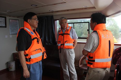 在南京水文防汛码头,宋志宏登上水文测船,检查了值班记录、工作日记等痕迹材料,并与值班人员亲切交谈。他叮嘱大家一定要做好防汛值班工作,严格落实好各项安全生产措施,充分做好各项防台准备工作。